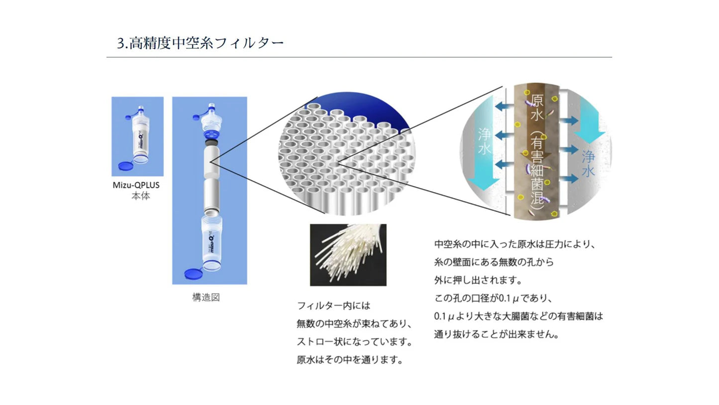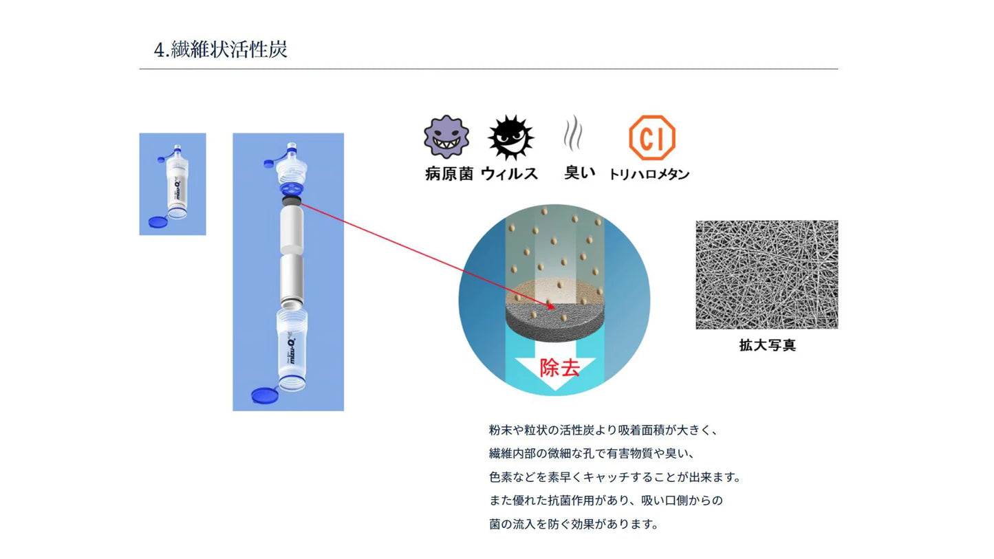 ろ材:中空糸膜(0.1ミクロン)繊維状活性炭